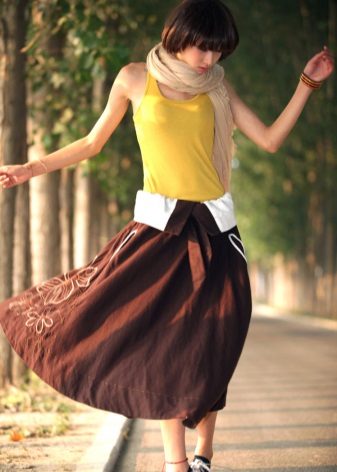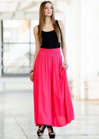 Perhaps the most versatile skirt at all times will remain an elastic skirt. This is truly a miracle thing that can hide or focus on the hips, emphasize the chest and highlight the waist line. All girls who prefer practicality in clothing are required to have such a thing, especially since you can sew it yourself from almost any fabric.