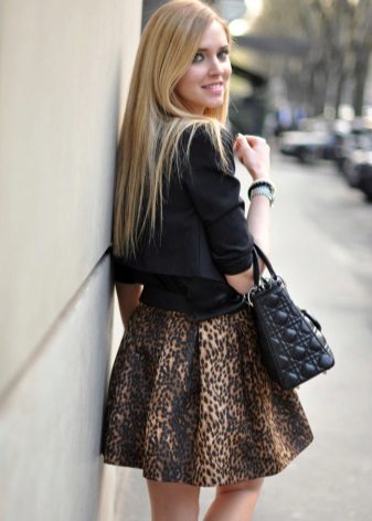 In recent seasons, the undisputed leader, as mentioned above - is the strip. But the leopard coloring, which goes well with the dark-fitting top, is not far behind her. Also on the first lines among prints, geometric figures, peas and a cage hold their positions.