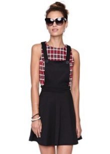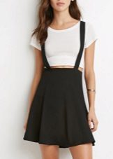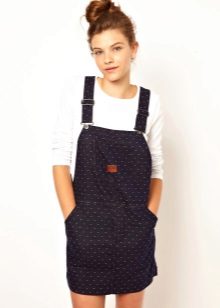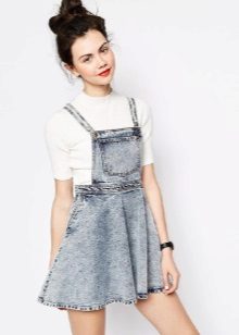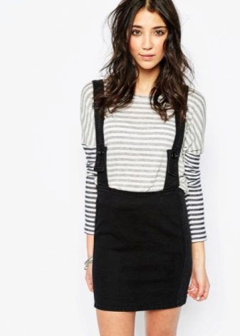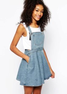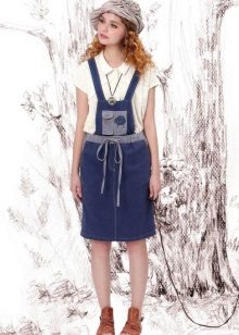 Among the models of women's versions of overalls, skirts-semi-overalls are quite often found. Unlike overalls, they do not have a closed top, that is, the straps in such clothes begin immediately from the skirt.
