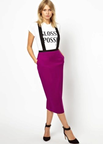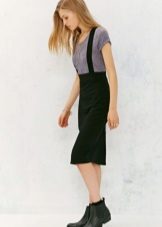 The most common styles of such skirts with straps are “pencil”, “trapeze”, “sun”.