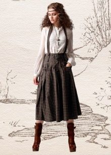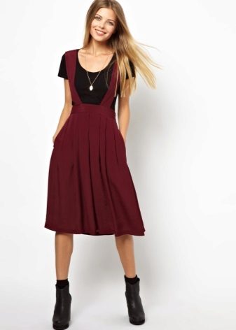 The accessories for the skirt-overalls made of elegant fabrics are selected massive and bright, and light-weight everyday models are limited to medium-sized elegant decorations of restrained shades. Some skirts of this type look good with a wide belt or belt.