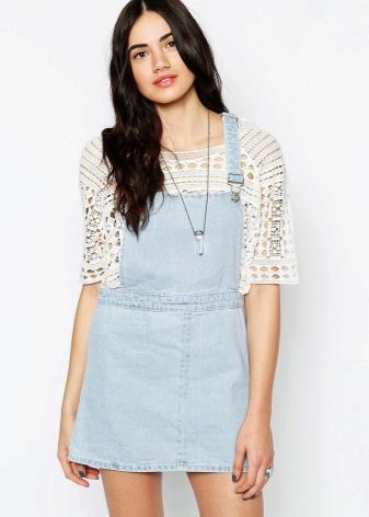 In addition to the fabric and colors of overalls, fashionistas can also experiment with different lengths. Short skirts are chosen by girls with slender legs, and if you want to hide the imperfections of the legs, it is better to prefer elongated models.
