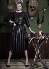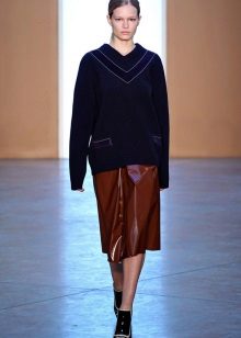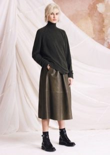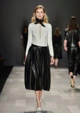 Skirts made of medium-length leather can be represented by a straight cut and pleated models that look very impressive.