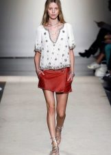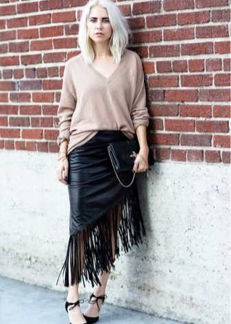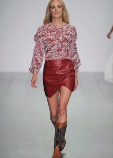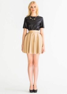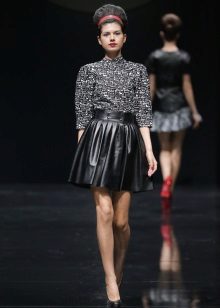 Such a leather skirt looks feminine, flirty and very romantic. It is easy to combine with different textures - denim or linen, viscous or lace. In a skirt-sun made of leather, you can hide the small fullness of the hips.