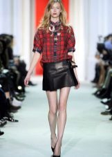 A variety of shirts, for example, in a plaid, with a bright pattern, in pastel colors, made of jeans material and others, will be a good top for a leather skirt-sun. A good option is also a sweater with a large knit in the winter and a simple shirt or a bright top in the warm season.