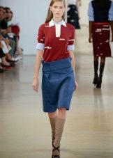 For such a skirt you can wear both a color shirt and a snow-white blouse. A pullover or sweater in black or blue will also be a good choice.