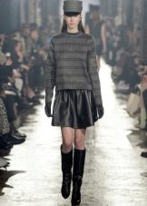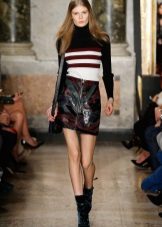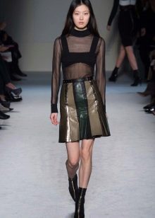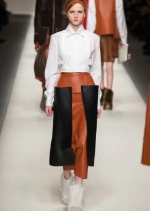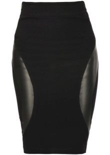 Models in which leather is represented only by a part of the skirt are very popular. In such products, leather inserts can be arranged in vertical stripes, but more often these are horizontal stripes.