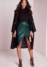 A blouse or turtleneck is considered the best outfit for a wraparound model. Also, such a leather skirt looks good with a fitted pullover, and you can throw a black jacket on top.