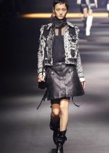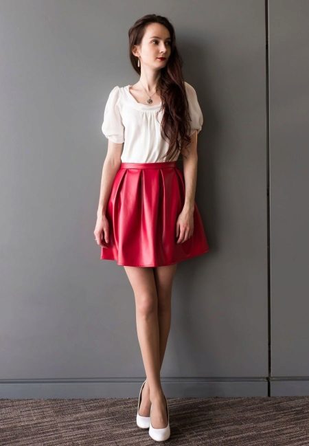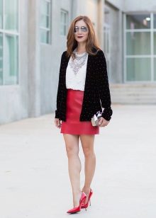 It is also worth choosing a white jacket for an ensemble with such a leather skirt, although a black leather jacket will also look very good with such a skirt.