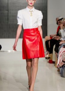 A skirt made of leather of this shade cannot leave anyone indifferent, drawing eyes to its owner. With such a skirt, a blouse with a bright print, for example, a leopard or polka dot, looks good.
