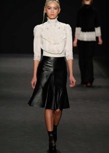 In many cases, a white top is chosen for the black skirt. No less common are combinations with any tone from a pastel palette. It should be noted that the black leather skirt harmoniously combines with almost any top, whether it be a red blouse or a green shirt.