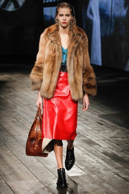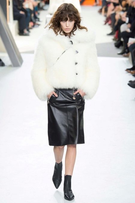 - To get a stylish and elegant look, put on a leather skirt, a tight-fitting white shirt and a simple-cut fur vest. To complement the outfit, use heeled shoes, earrings, rings and a small leather bag.