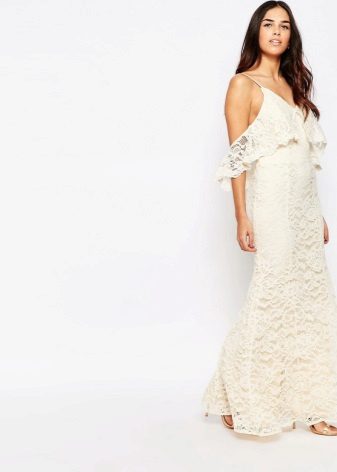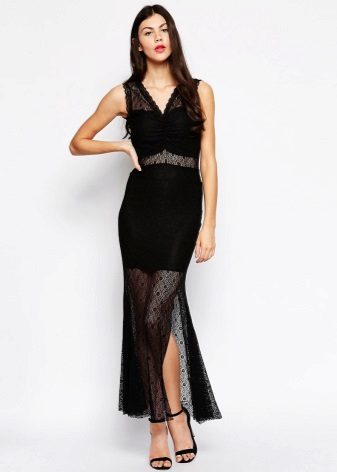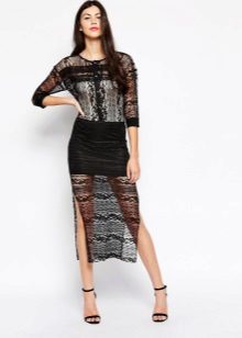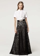 A long lace skirt is most often used to create an evening look. In this case, it should be supplemented with a blouse made of thin satin, batiste, silk or translucent material.