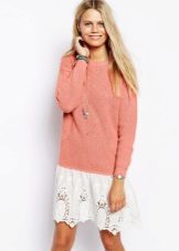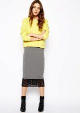 A great option for cool weather. A lace pencil skirt will look great with a voluminous jumper, turtleneck or sweater. Layering is now in fashion, so you can safely experiment with the image and put on a shirt under the jumper, for example.