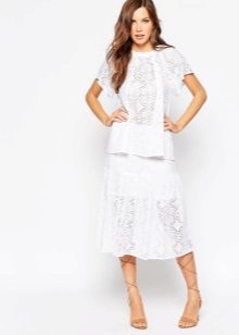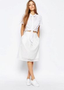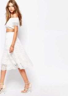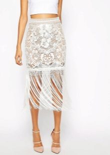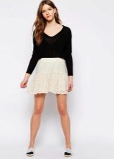 White lace skirts also belong to things universally combined with other items of clothing. The white skirt in itself looks very elegant, for the compilation of a spectacular image, a well-chosen top is enough. A satin, chiffon, silk or guipure blouse will help to create a very delicate, feminine bow.