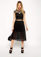 A versatile clothing option that suits lace skirts of any style. A lace, satin, silk top to match the skirt will help to create an elegant, evening look. A plain top made of light fabrics is a great option for every day.