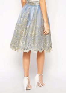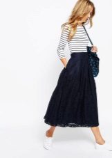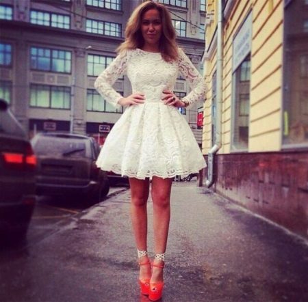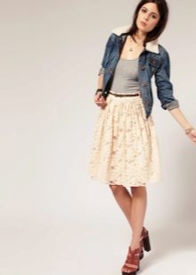 Initially, lace was used to create a romantic style in clothes. Light, delicate fabric perfectly suited the image of a dreamy young lady. Today's fashion trends dictate new rules. A lace sun skirt goes well with a simple, sleek top and denim shirt. Such an image looks very modern, democratic and no less elegant than romantic!