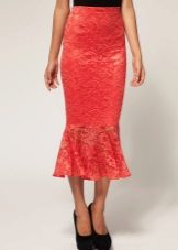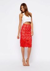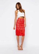A red lace skirt combined with a classic top, a jacket and high-heeled shoes will help create or enhance the image of a successful business woman. Such a skirt will not tolerate mixing with variegated or slurred things. Only classic, it is always a win-win option.