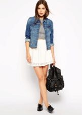 An unexpected look is a combination of snow-white lace and a blue denim shirt. Such an image looks very fresh and youthful.
