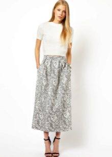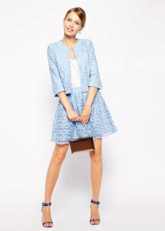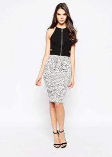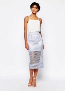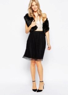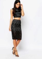 Top and skirt made of the same material, complement each other perfectly. If you choose a top in the same shade as the skirt, then together they will look like an elegant, evening dress. It is undesirable to choose a top of a darker shade than the skirt itself. A fitted jacket will help to complement the created image.