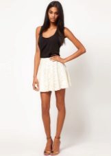 - Short and flared skirts are successfully combined with tight tops or T-shirts.