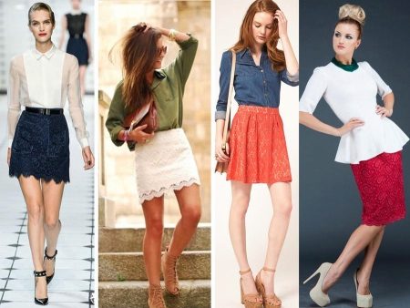 Women with perfect figures or parameters close to them can safely choose a short lace skirt of any style. It is advisable to combine a miniskirt with a more modest, closed top, so that the image looks more harmonious.