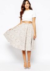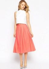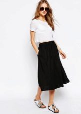 Skirts of this length are usually chosen by girls who are forced to follow a strict dress code in the summer heat. And because this is often a direct cut of restrained colors. Also in midi length flared casual linen skirts are presented. They are distinguished by a bright tone of fabric or an interesting print.