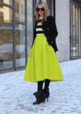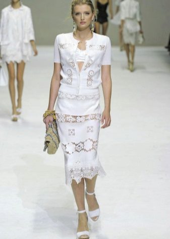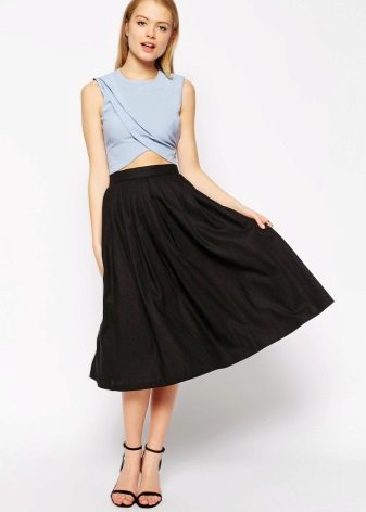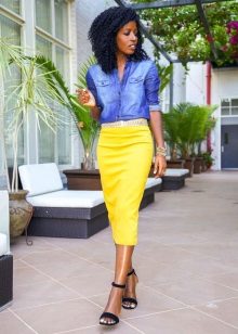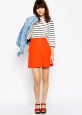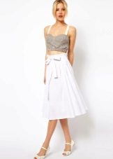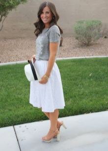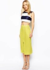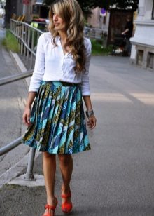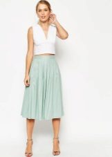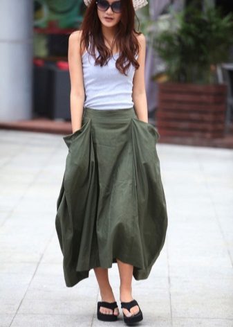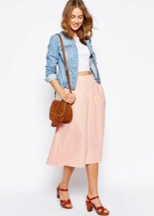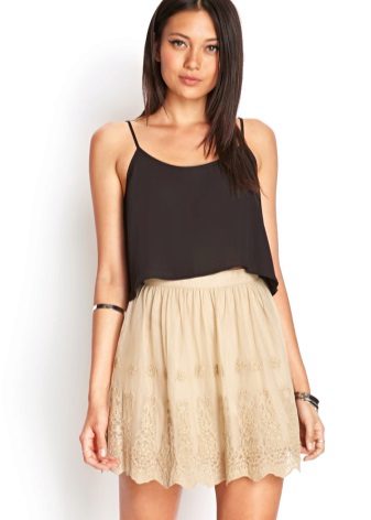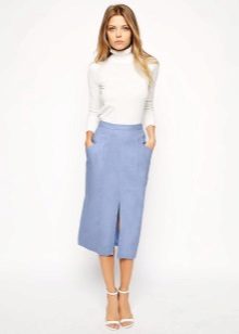 If the skirt is represented by a straight cut, the top to it is often picked up loose, and a lush linen skirt is usually combined with tight tops, T-shirts and blouses.