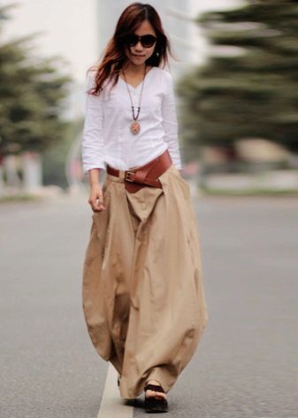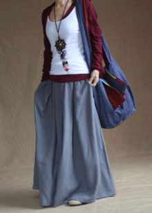 Such linen skirts have been trendy for several years. They look very feminine and are often bought for a summer wardrobe. Modern maxi skirts made of linen are both simple and rather complex cut.