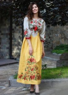Most often, the hem of a linen skirt is trimmed with embroidery, but it can also be present in the waist area, decorating pockets and a belt.
