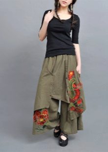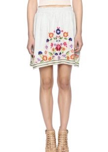 Among prints on linen skirts, a floral and oriental motif is especially popular. They are represented by a wide variety of drawings, which should be selected taking into account the figure and your color type. For example, a print with large flowers of bright color fits well into the wardrobe of slender girls with dark hair, and fair-haired beauties with feminine rounded shapes are more suitable for a pastel-colored linen skirt with a small pattern.