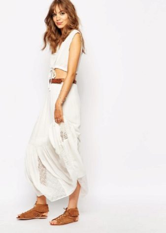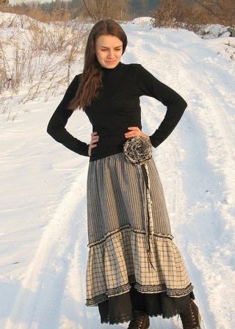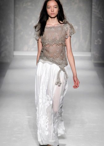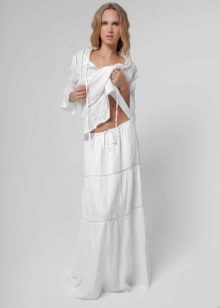 Such linen skirts look original and stylish. They are decorated with frills, embroidery, lace and ruffles, they are often sewn multi-layered, so they look delicate and airy. Their coloring is often natural, and the length is represented mainly by maxi models.