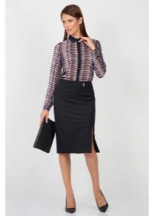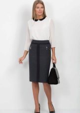 The most popular type of business skirt is still a pencil skirt. It is easy to combine with different models of blouses, tops and cardigans.