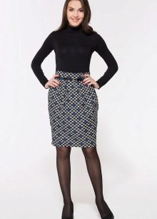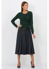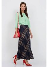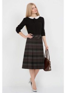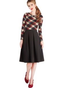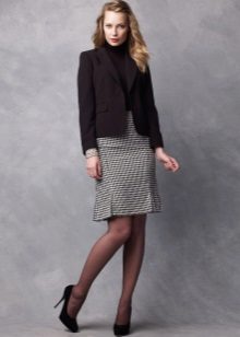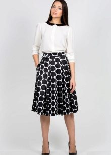It is acceptable to wear flared and puffy skirts from dense fabrics with different geometric prints in the office, for example, in a cage or strip.