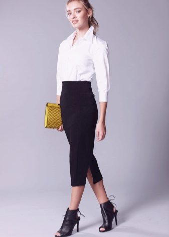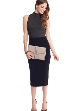 The advantage of this style is that, despite the severity of the cut, the pencil skirt looks very feminine and elegant. It beautifully fits the female figure and allows you to adjust some of its shortcomings.