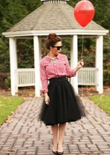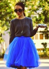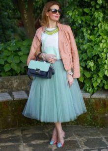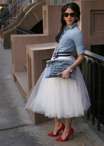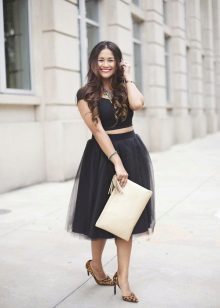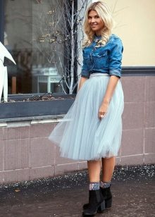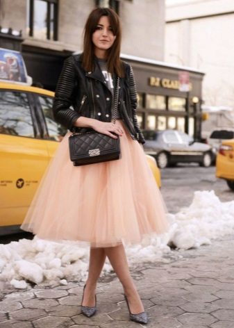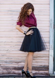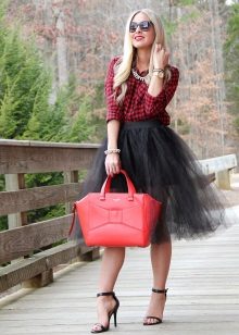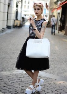 You can experiment not only with clothes, but also with shoes and accessories. A tutu skirt will go well with classic shoes or sandals, as well as with rugged boots or high lace-up boots. Jewelry can also be in a variety of styles - from sparkling jewelry, to wooden beads and leather bracelets.