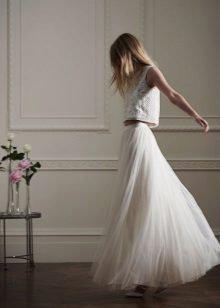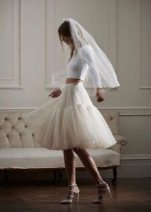 Such a skirt is a great option for a wedding dress for brides who want to abandon a classic dress. Choose elongated, not very curvy models. They go well with a corset, cropped jacket or tight-fitting top.