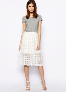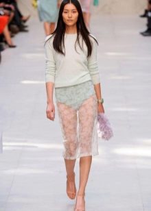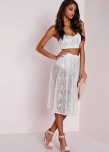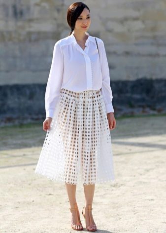 Transparent white skirt - the embodiment of tenderness and purity. In the summer version, it is possible to use all kinds of floral prints that will give the image even more romance. A white lace skirt will add softness to the image, slightly obscuring the sexual transparency.