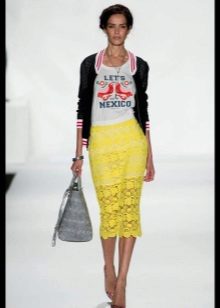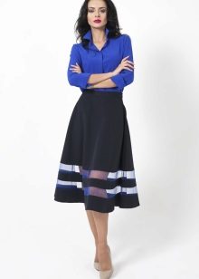 Due to the inserts of lace or organza, you can add transparency to the skirt from a dense texture. Such elements are permissible in a skirt of any style, and the frankness of the model and the width of the inserts depend only on your looseness.