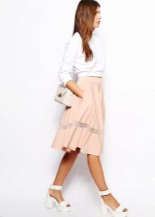 The combination of them with shoes on low soles makes this tandem very comfortable, and with heels - insanely feminine. Almost any one is suitable for a midi length skirt - both a lightweight loose top and a strict blouse.