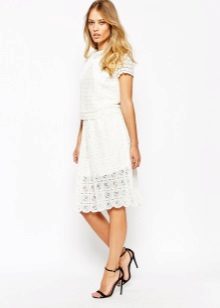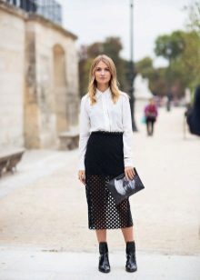 As a working variant of clothing, a lace black skirt + white blouse will be an excellent combination. Under the main skirt in this case, you need to wear the lower one in tone, but it is important that it is shorter than the top. Then your hidden sexuality will appear in the image through a purely business look, which will simply excite the imagination of the male half of the team! The point in this bow can be put on high-heeled shoes - visually you will appear slimmer and thinner.