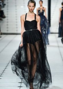 For the party, transparent fabrics open up all the possibilities for a flight of fantasy and conscience. A transparent skirt of light colors can be worn with a plain corset, and dilute it all with bright accessories - a bracelet, glasses, or a clutch bag. Of the shoes, the friends of transparent skirts are, of course, heels. Complement your look with a high hairpin - and you will become the most attractive and charming guest at any holiday!