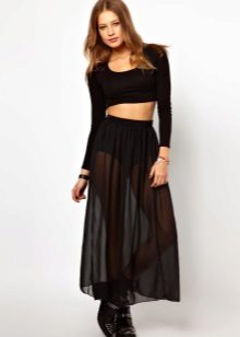 According to designers, in our time, an attractive woman should look mysterious, but not affordable. Therefore, maxi skirts have become very popular. In combination with the transparent texture of the fabric, you can wear long skirts, showing off your legs, but at the same time give the impression of a modest girl.