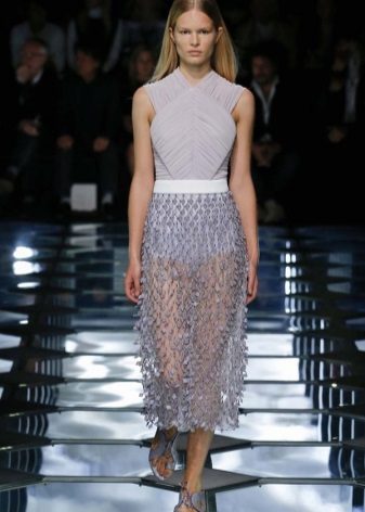 Organza, crepe de chine, silk or gas give an unrivaled ease of movement, and the transparency of the fabric provides a unique opportunity to create a sophisticated and at the same time endlessly sexy look. Designers create provocative skirt models for shocking girls who are not afraid to show their body. And for gentle and sophisticated young ladies, they come up with models with a veil of mystery and sophistication, so that they slightly hint at frankness, further excite the male’s imagination.