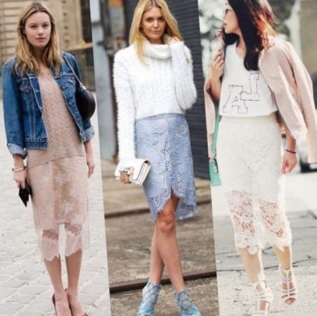 Today, almost all styles of lace skirts are sewn from Venetian lace - it fits almost any upper, such models can be worn at different times of the year.