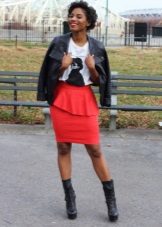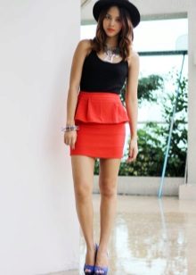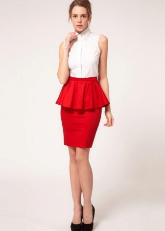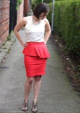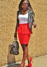 If you choose the right color, then a red skirt with a peplum can be worn anywhere. A deep wine color model combined with a light shirt or jacket will be a great alternative to an office suit. Scarlet, coral and other rich shades are suitable for informal events. A red peplum skirt will go great with a bright top, such as a yellow or blue top.