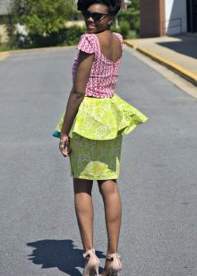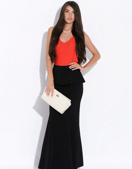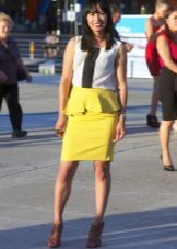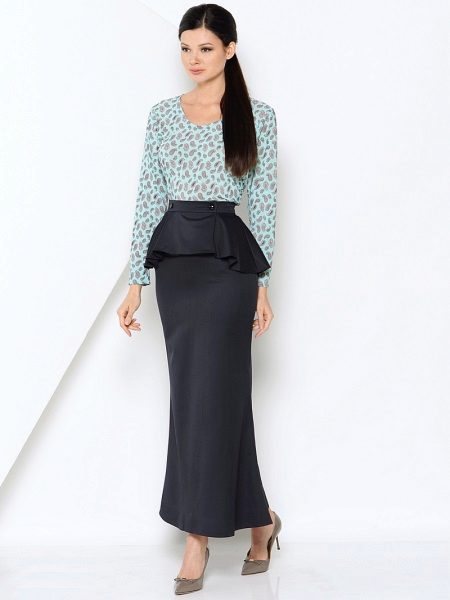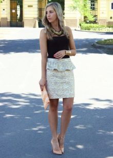 A peplum pencil skirt is now very relevant. For several seasons, fashion designers have been tire of experimenting with this model, changing the length, width and shape of the basques. A narrower skirt with an asymmetric peplum, as well as a peplum, is made of material contrasting in color or texture.