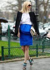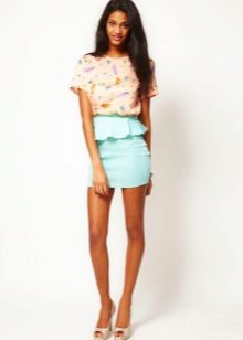A blue peplum skirt is suitable for both work and everyday life. In it you can go to study, to some cultural event or to friendly gatherings in the bar. Such a skirt can be combined with simple clothes, casual-style clothes or wardrobe items that are meant to be "on the way out."