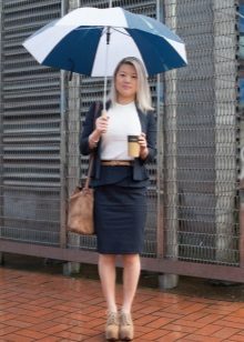 If you choose an outfit for the cold season, the jacket will be a great pair for a peplum skirt. Under the word "jacket" hides a rather large category of things, but usually refers to the top of a dense material with a long sleeve. Remember that the jacket should not cover the skirt belt, so choose only shortened models.