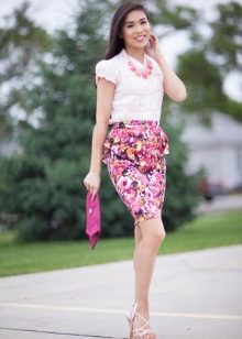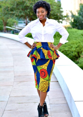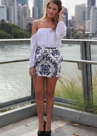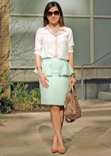 A white peplum skirt will perfectly combine with monochrome clothes from a business wardrobe, as well as with bright, informal tops.